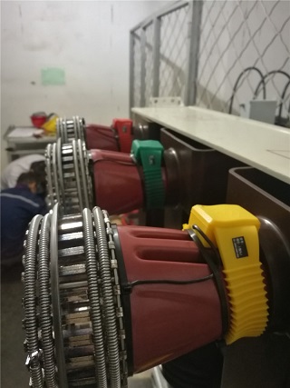 9月17日下午到達(dá)**能源公司,這個(gè)測溫系統(tǒng)需要安裝的有180個(gè)測溫點(diǎn),2臺(tái)RM-C3000G接收主機(jī)和 1臺(tái)RM-C3000E接收主機(jī)。本次工程訂貨安裝非常緊急,客戶要求所有測溫點(diǎn)必須在19日0時(shí)前安裝完成。其中有5個(gè)柜子特別緊急必須在17日21時(shí)點(diǎn)之前必須完成。根據(jù)客戶要求進(jìn)行柜號(hào)排列,并做記錄,然后按順序找出10KV配電室這5個(gè)開關(guān)柜對應(yīng)的測溫點(diǎn)序號(hào)進(jìn)行安裝。小車推出后發(fā)現(xiàn)觸頭為倒錐形,合金片收緊困難,溫度探頭難以安裝,施工人員克服種種困難,保質(zhì)保量并提前2小時(shí)完成,主機(jī)全部接收到已安裝探頭的溫度數(shù)據(jù)。